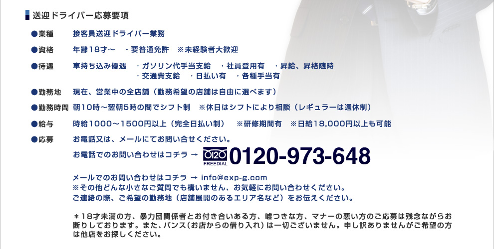 障害をお持ちの方の場合は、接客員がご自宅までご訪問いたしますので、気兼ねなくご連絡・ご予約下さいませ。ご連絡心よりお待ちしております。